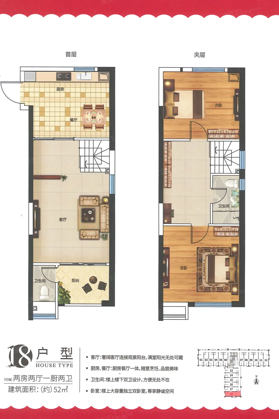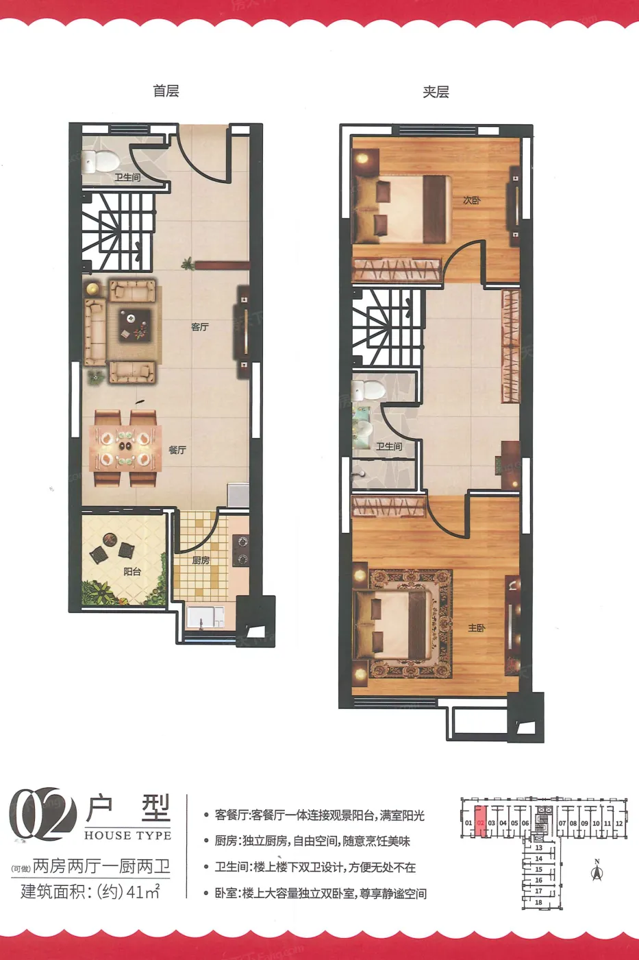 产品囊括44-130㎡的1-4房,其中主力户型以80平方米左右的两房、三房为主。