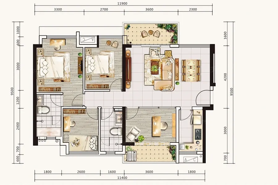 项目以“围合式”布局为主,视线开敞,住宅平面布局通透。总规划户数约1633户,住宅部分车位比1.22:1。