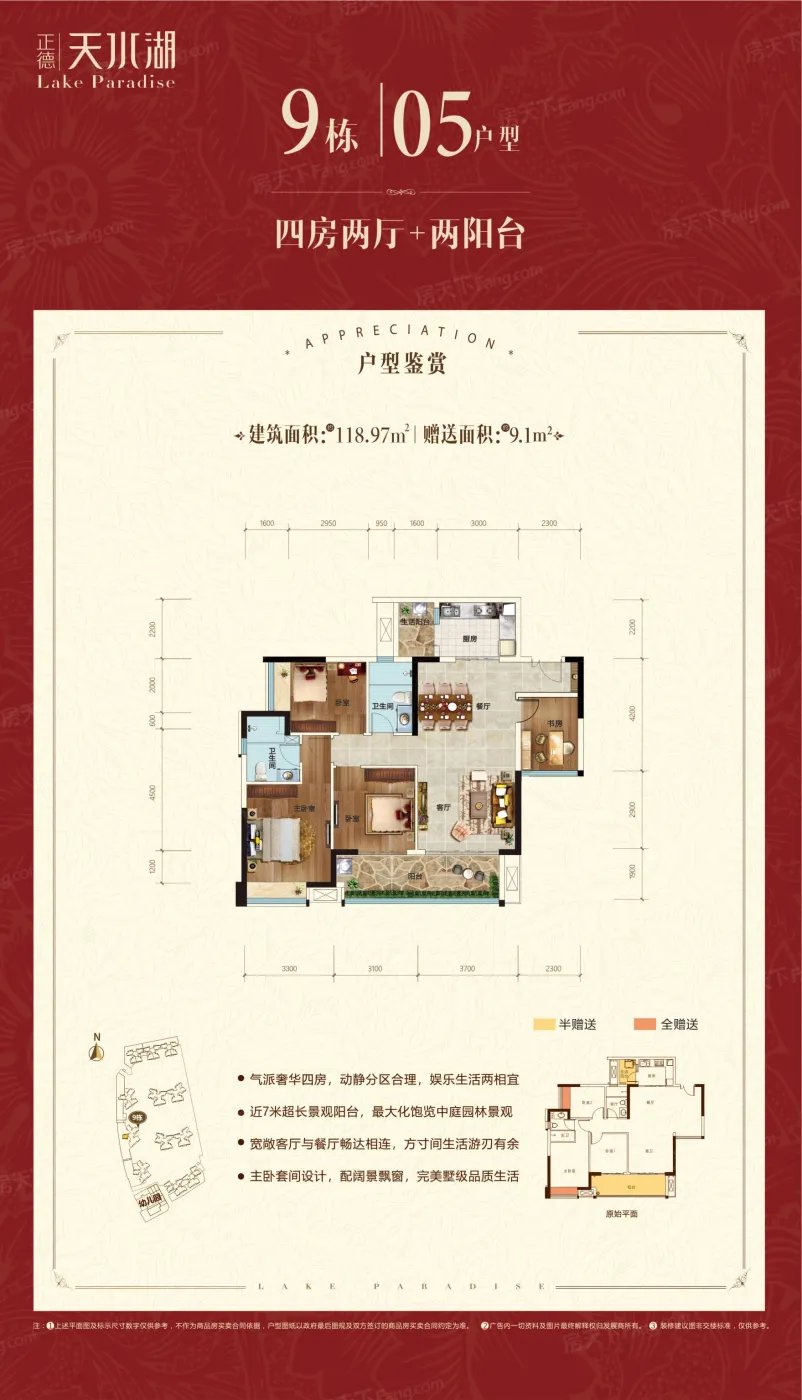 正德天水湖五期总占地80亩,共规划12栋高层洋房,是名副其实的“低密度生态家”。五期是前期产品的全面升级,全新匠筑现代简欧风格,私享约50%双湖景观园林花园,社区内还有儿童游乐设施配套以及2000平米的私立幼儿园规划,充分满足每户舒适健康生活环境。